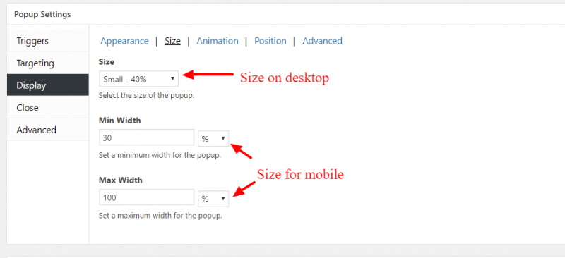 There are a number of settings in PopUp Maker for sizing the popup for mobile and desktop views. Some of these setting may seem confusion and under documented. Below is a quick guide for resolving common issues on sizing for both platforms.
